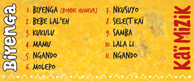Biyenga, « La bonne humeur » en dialecte de la République du Congo, est le deuxième opus de l’association Kaï-Dina (Villeneuve d’Ascq) dont la section musique : Kaï-Mizik produit albums et spectacles.